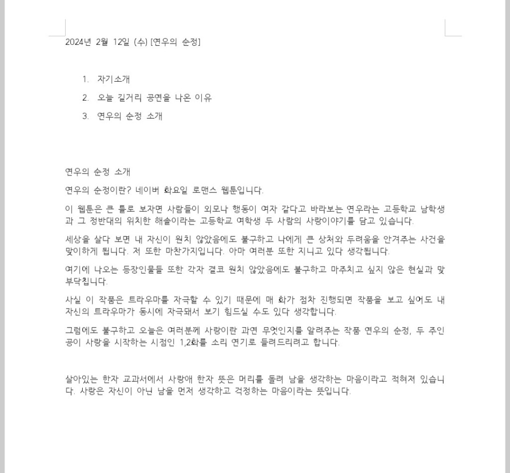 작품 : <연우의 순정> 1,2화